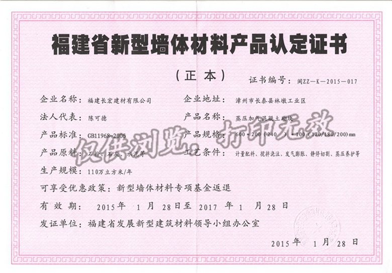 福建省新材辦通過(guò)我公司“蒸壓加氣混凝土砌塊”新材產(chǎn)品認(rèn)定